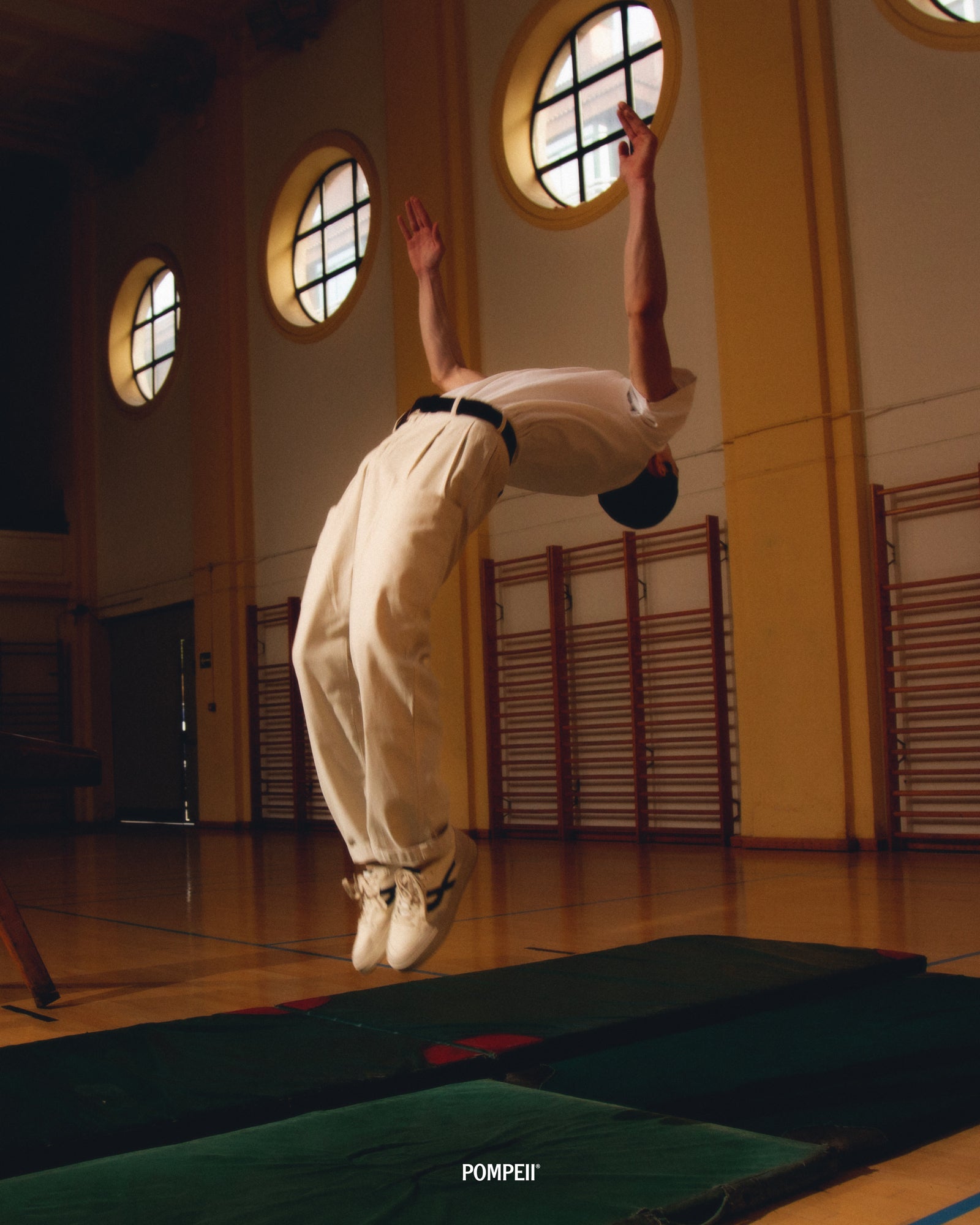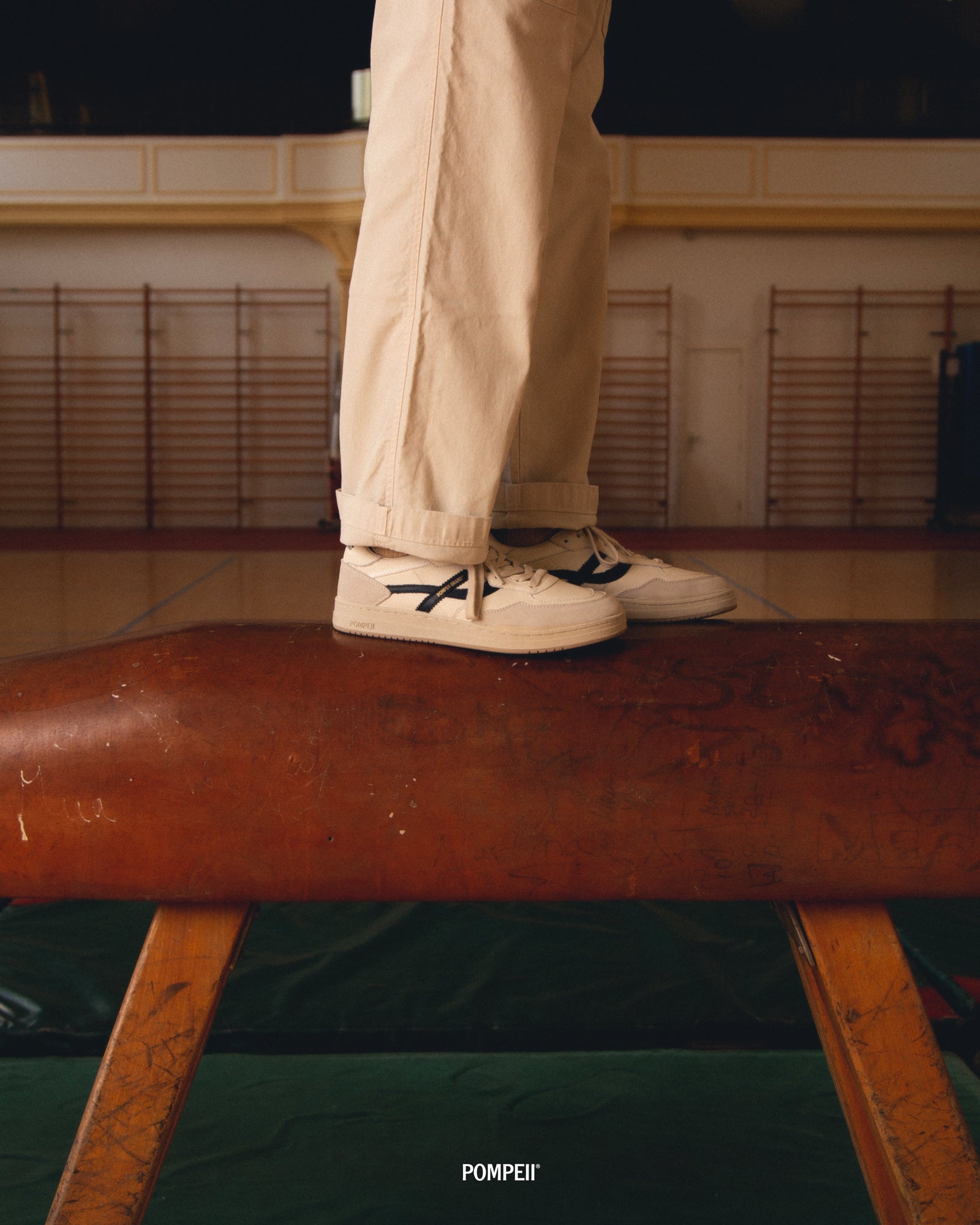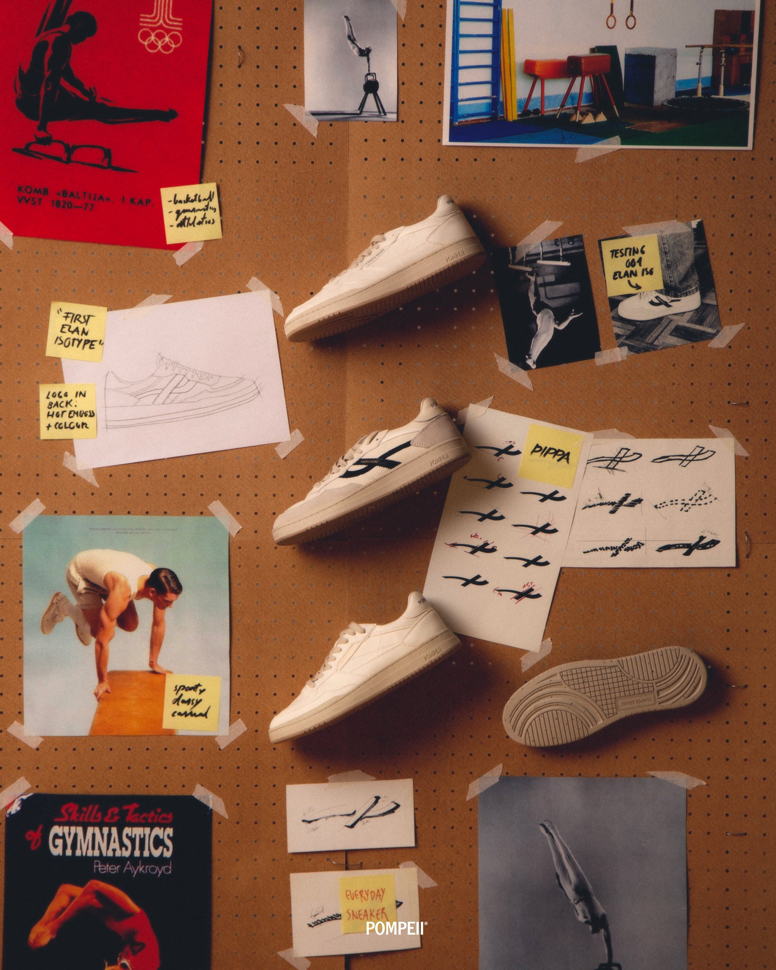 Historically, sneakers have been directly related to the practice of sports. It is no secret that at Pompeii we're heavily inspired by sports, and for our latest Elan Pippa spot, we wanted to pay homage to the early days of gymnastics. A moment where footwear simply looked for function, but unintentionally was beautiful in form.