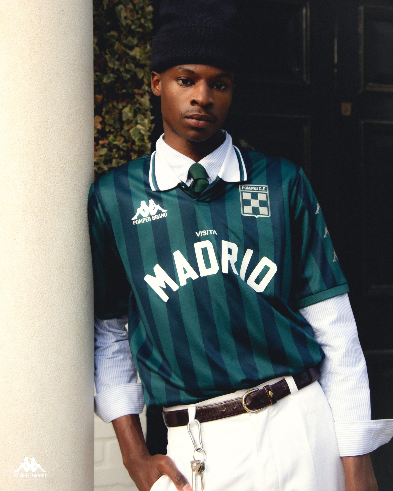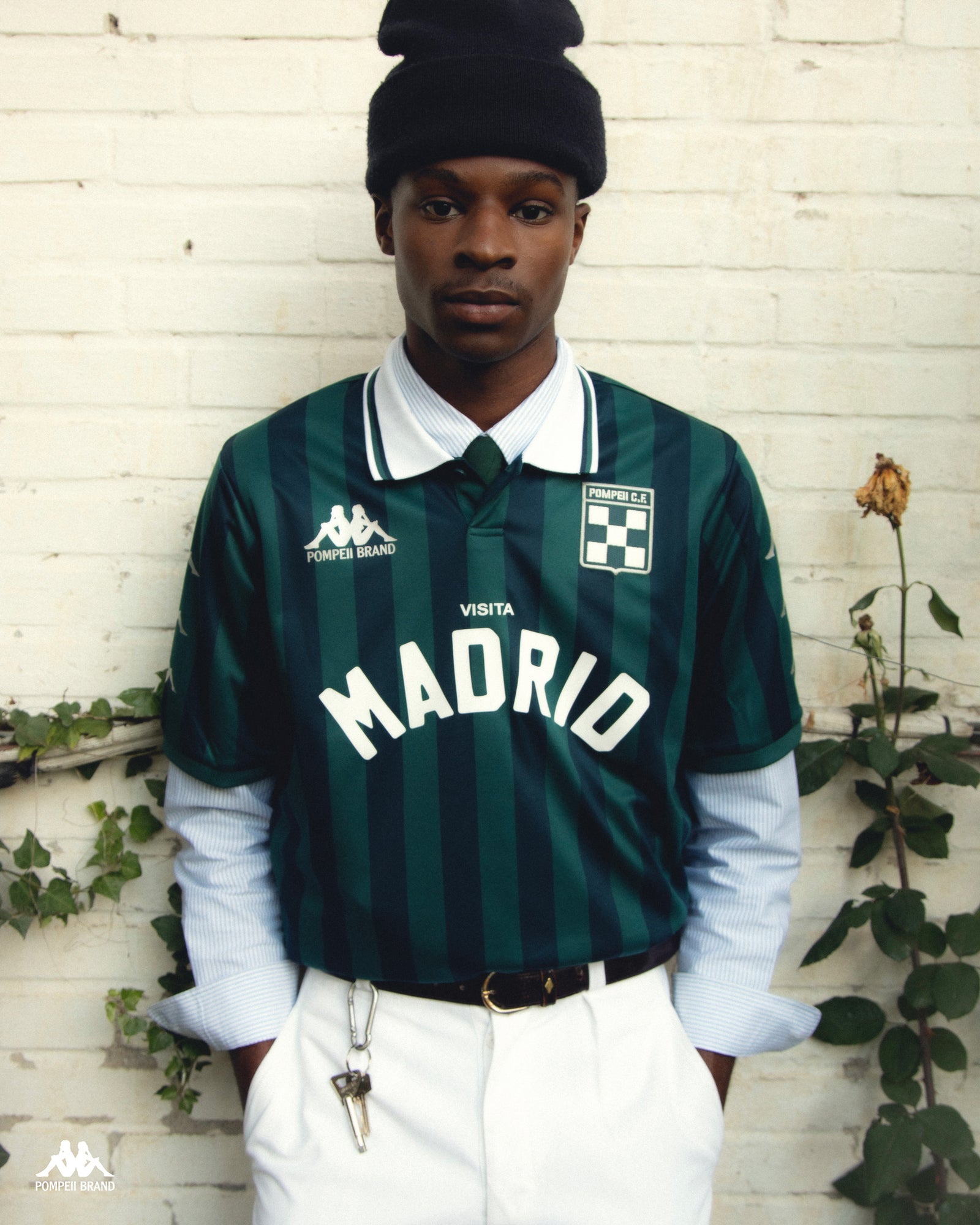 Pompeii Club de Fútbol está de vuelta, un club con un profundo respeto por la tradición, por el deporte, y, sobre todo, por los aficionados. Esta temporada, la colección está compuesta por una camiseta de local con rayas verticales, una camiseta de visitante plateada de manga larga, una chaqueta de entrenamiento con rayas diplomáticas, una gorra de equipo y una bufanda de equipo. Una colección para llevar principalmente fuera del campo, pero con la tecnología para usarse dentro de él. De Madrid al mundo.