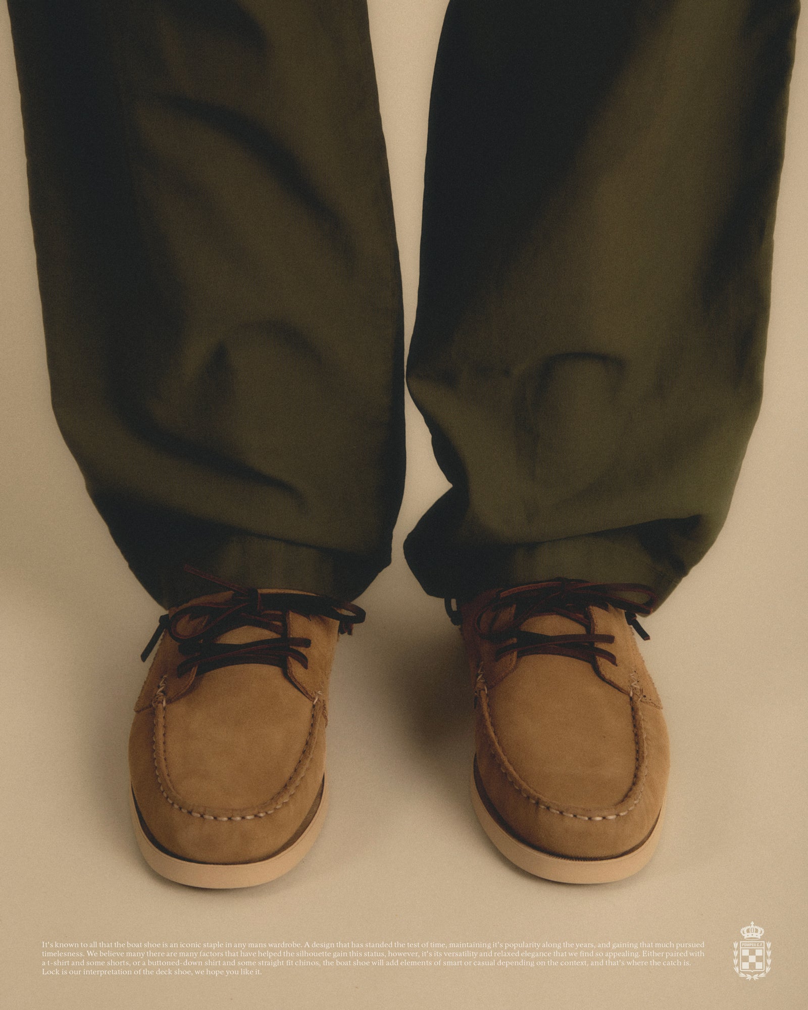 It's known to all that the boat shoe is an iconic staple in any mans wardrobe. A design that has standed the test of time, maintaining it's popularity along the years, and gaining that much pursued timelesness. We believe many there are many factors that have helped the silhouette gain this status, however, it's its versatility and relaxed elegance that we find so appealing. Either paired with a t-shirt and some shorts, or a buttoned-down shirt and some straight fit chinos, the boat shoe will add elements of smart or casual depending on the context, and that's where the catch is. Locke is our interpretation of the deck shoe, we hope you like it.