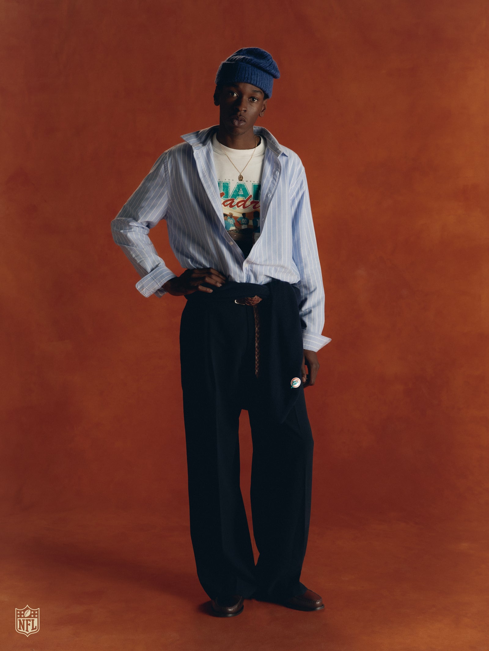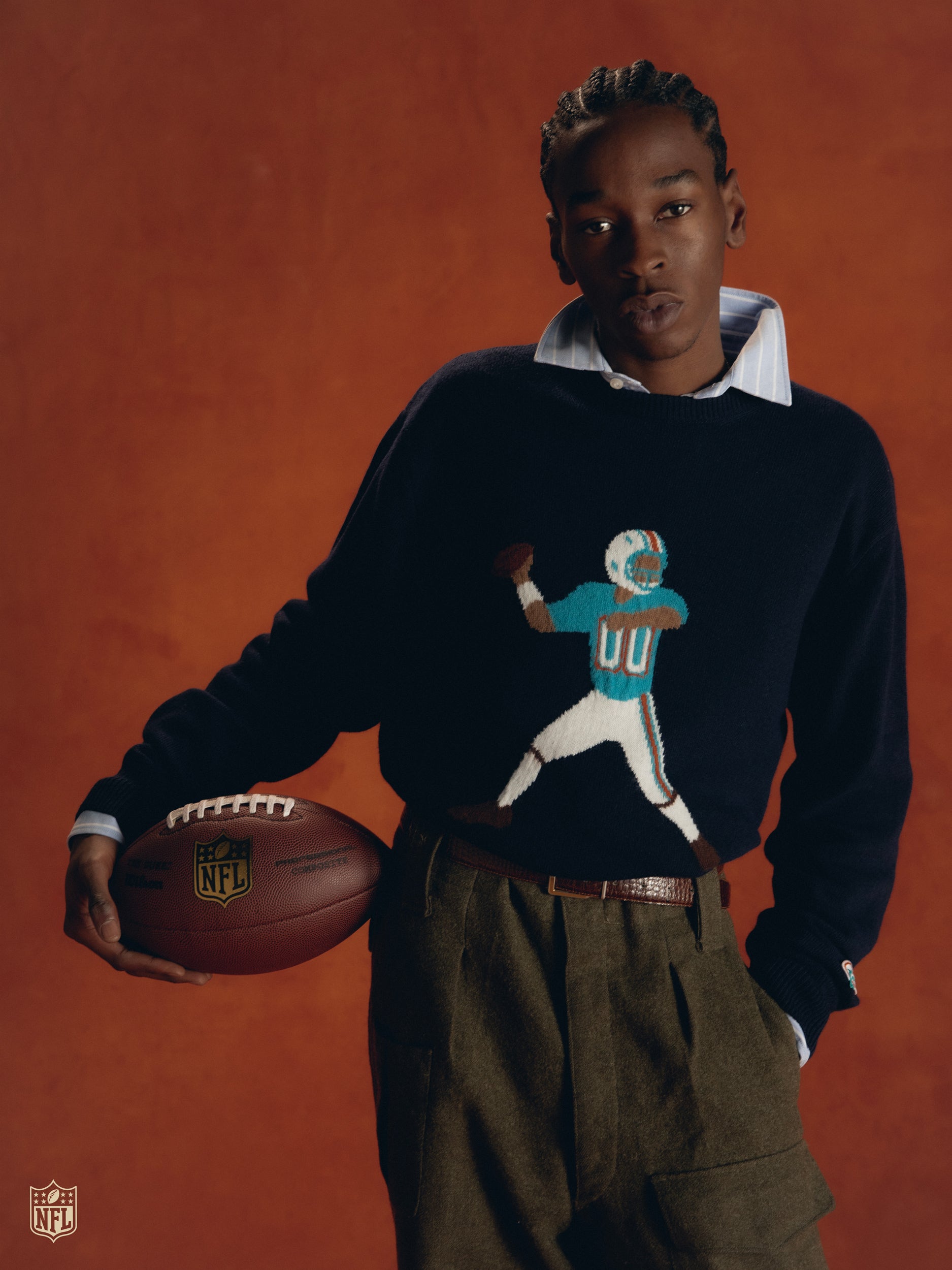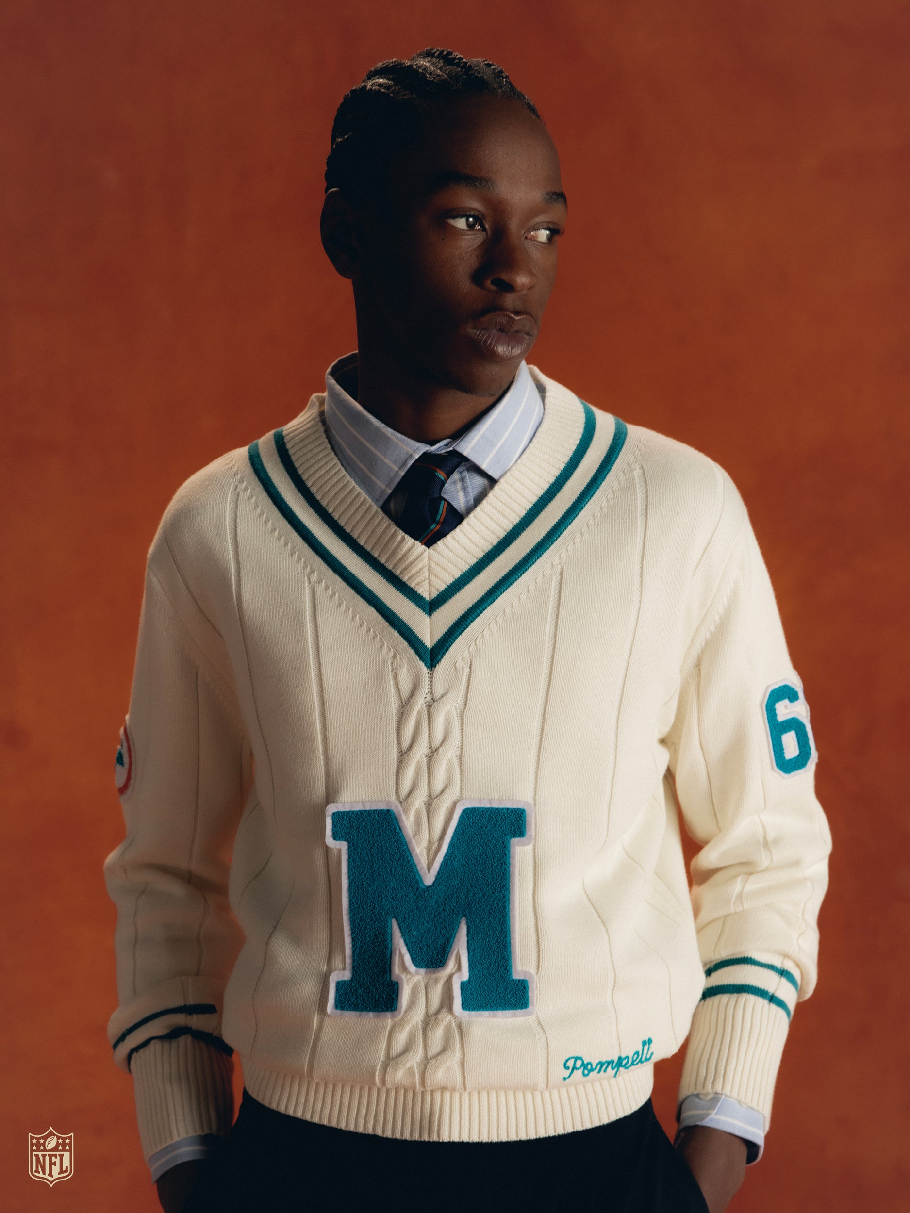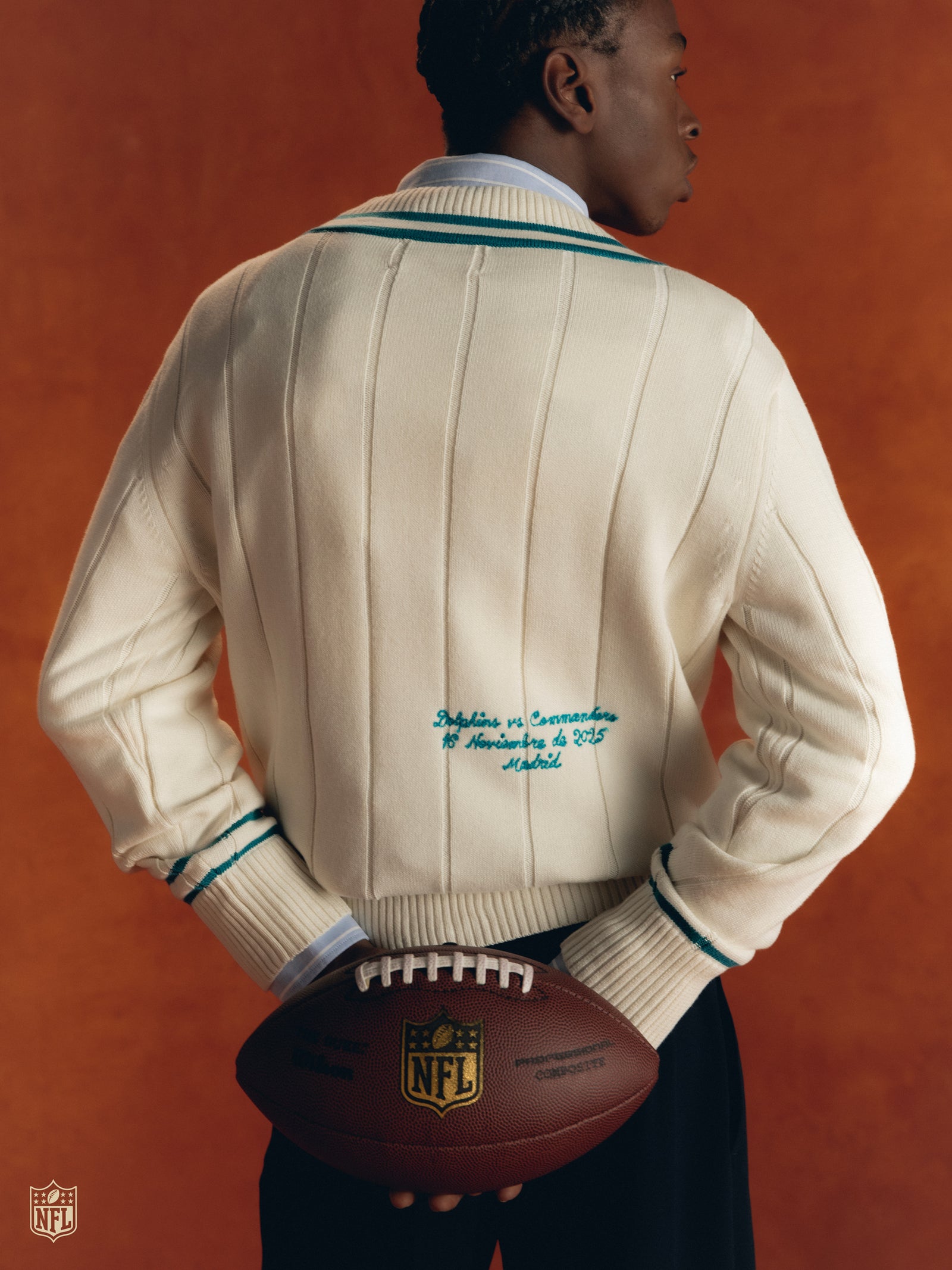 This collection marks the arrival of the NFL in Spain for the very first time, and with it, the Miami Dolphins. We welcome them to Madrid, our home, through a collaboration that blends two worlds. An American story, told with a European accent.