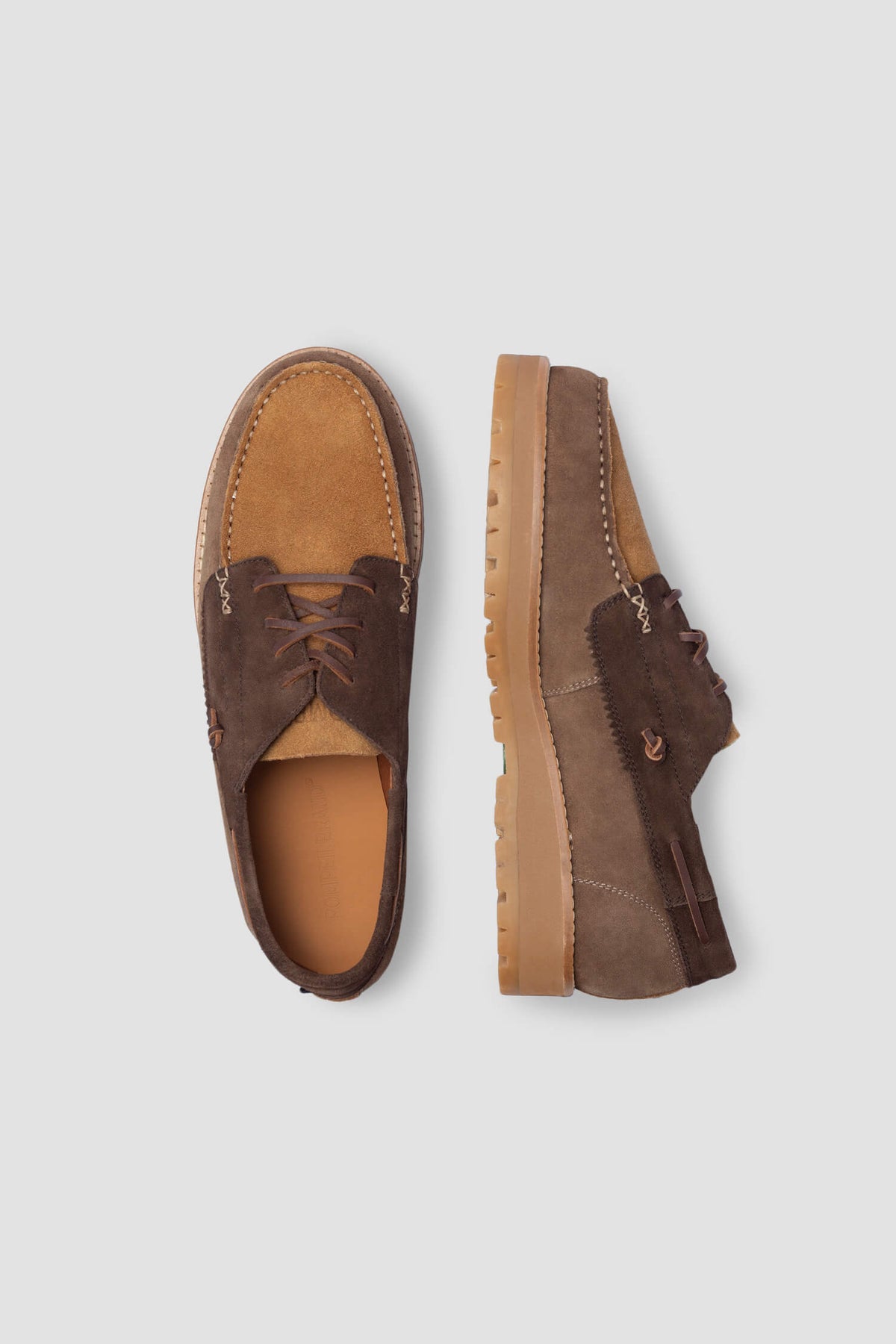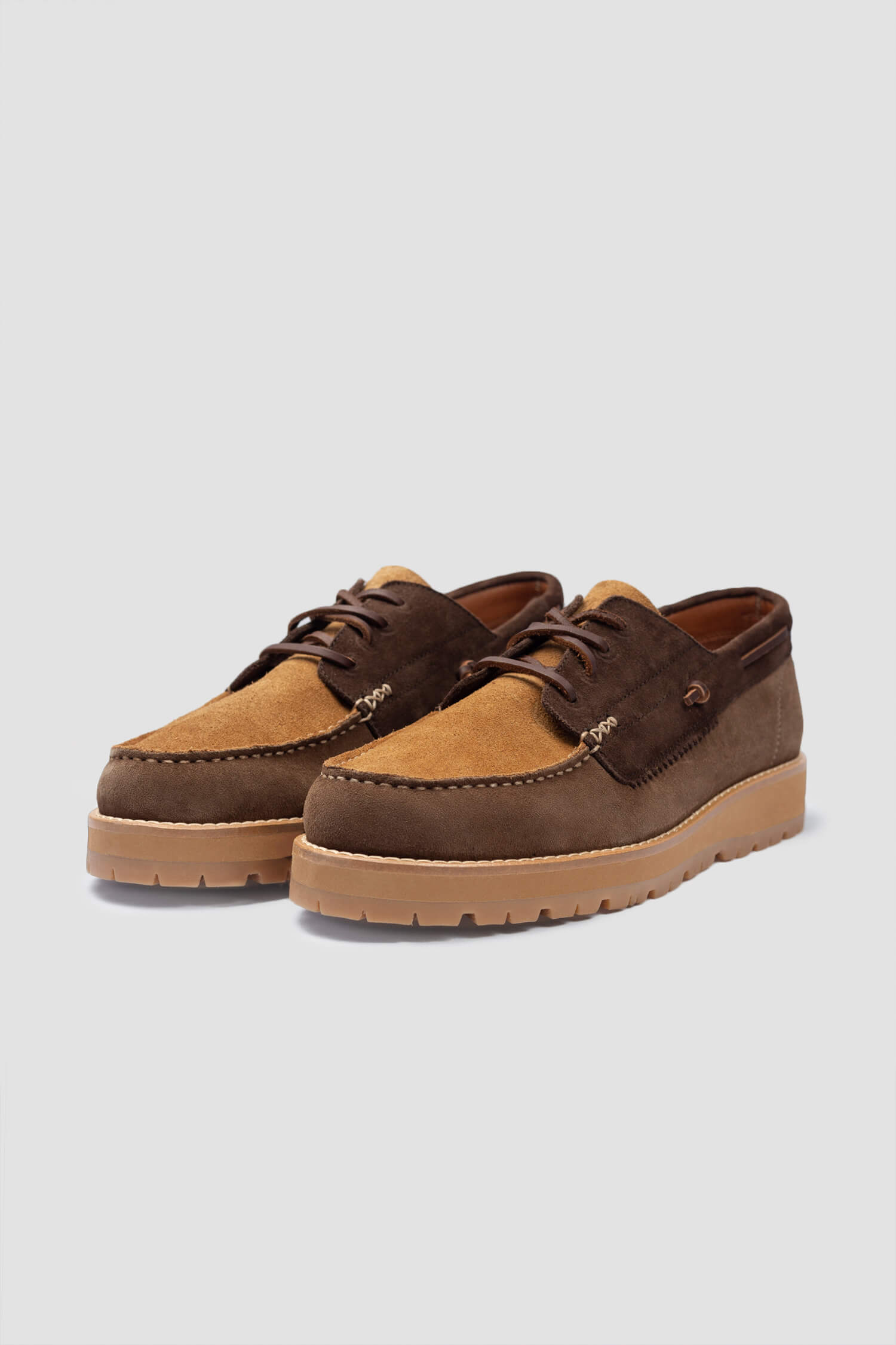 Náutico de serraje hidrófugo con cerco de piel, suela de EVA y patín antideslizante. Fabricada en España.